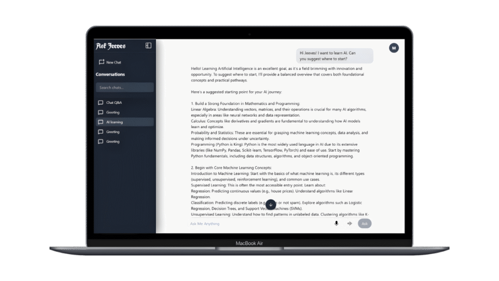 Ask Jeeves AI answers questions, generates images, processes files, and performs web searches — making everything smarter, faster, and more fun!